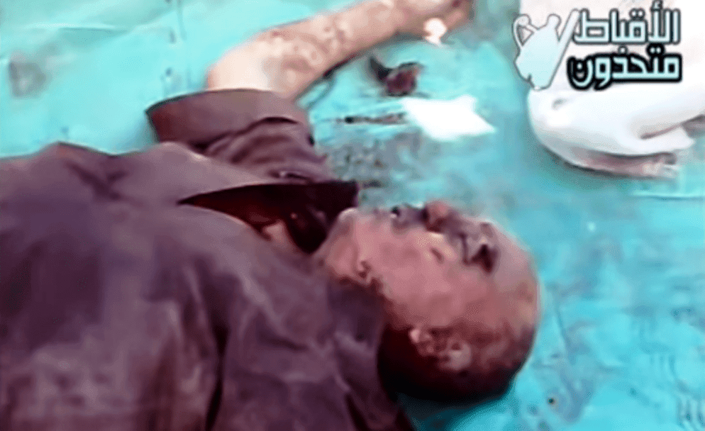 During these rampages, rioters randomly killed an elderly Coptic man, Iskander (Alexander) Toos, in Delga (also Minya governorate). After murdering him, they dragged his body on the ground to jeers and cries of “Allahu Akbar” (graphic video here). His corpse was then unceremoniously hurled into a garbage bin. For three days, his children were prevented from retrieving the body for burial. An unknown person eventually buried Alexander in an unmarked grave. His relentless murderers found the grave, exhumed the mangled body, propped it up, and used it for target practice.