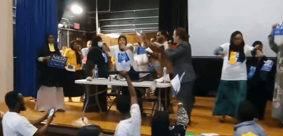 A riot erupted in Minnesota during Democrat nominations for Minneapolis City Council on Saturday, which led to no candidate being chosen in Ward 10 after officials were forced to shut down the event over safety concerns. Somalian supporters of city council candidate Nasri Warsame turned to political violence and reportedly assaulted Minneapolis city council member Aisha Chughtai and her supporters when she took the stage to speak at the Democratic–Farmer–Labor Party's endorsing convention... Video [here] shows Warsame supporters forcefully jumping on stage, banging on tables, waving signs, and shouting over both Chughtai and her supporters. Unable to contain the disruption, convention chairman Sam Doten was forced to adjourn the meeting without a candidate being chosen citing safety reasons, and called the situation a great “embarrassment”…